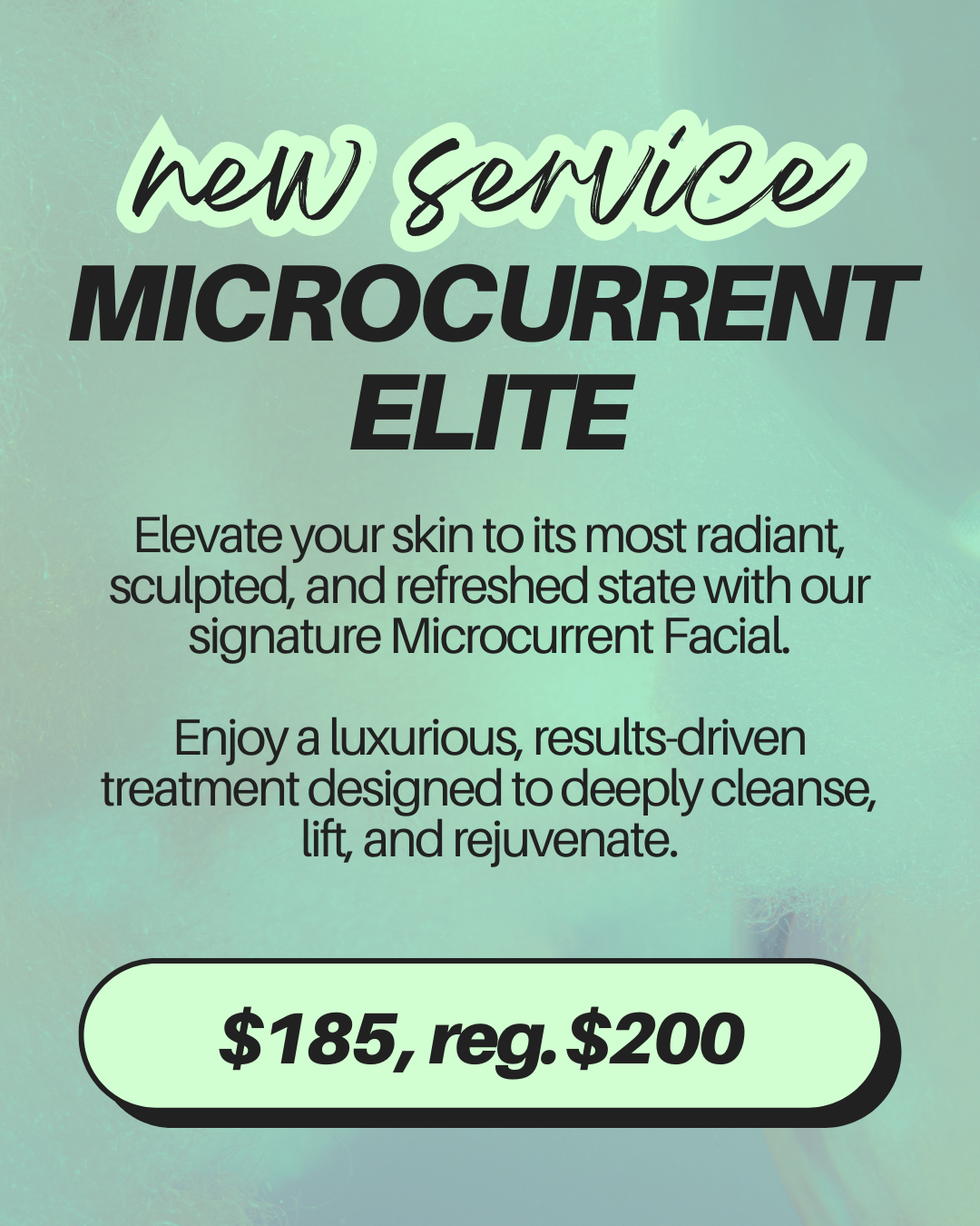 Elevate your skin to its most radiant, sculpted, and refreshed state with our signature Microcurrent Facial - luxurious, results-driven treatment designed to deeply cleanse, lift, and rejuvenate.